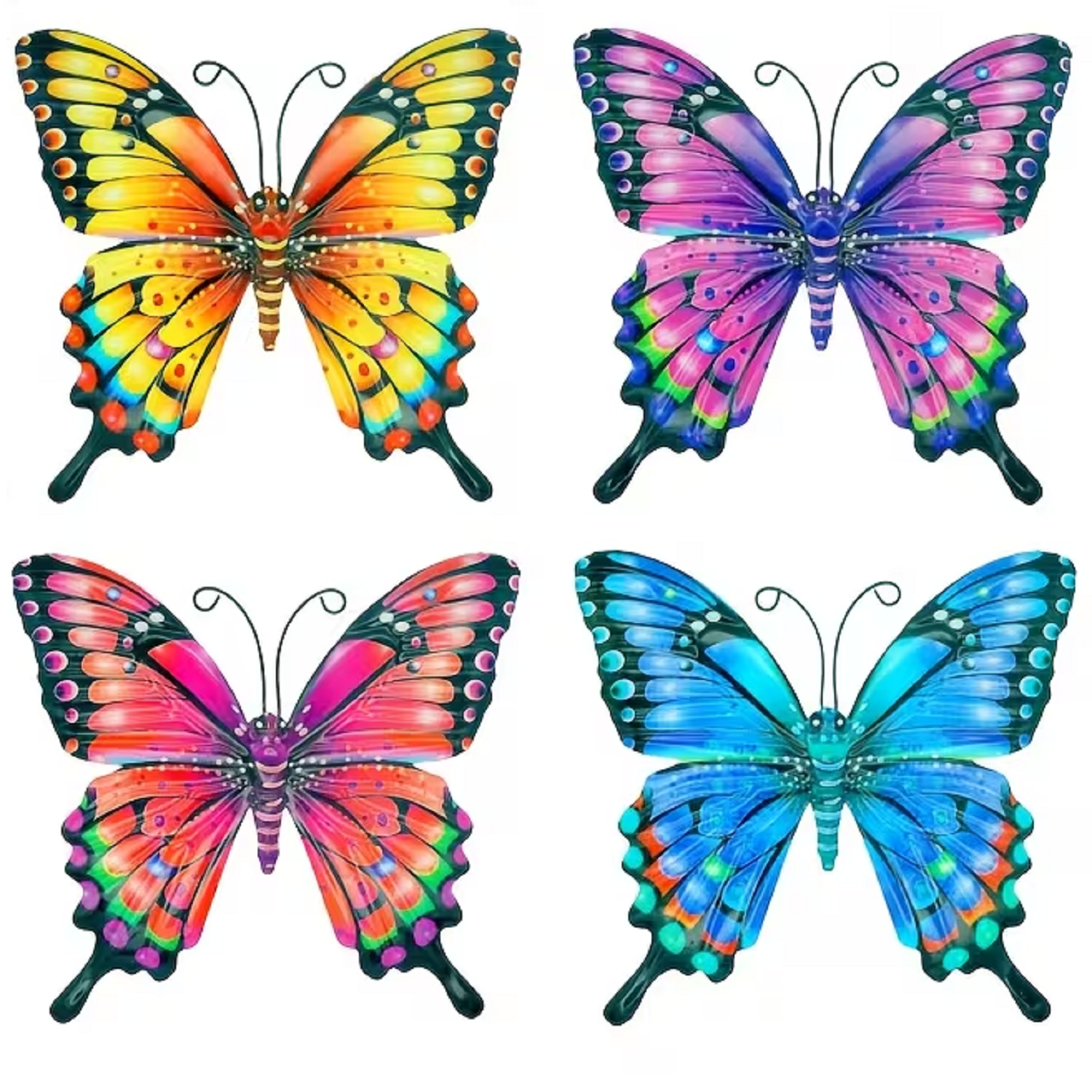 4 forskellige sommerfugle i metal.